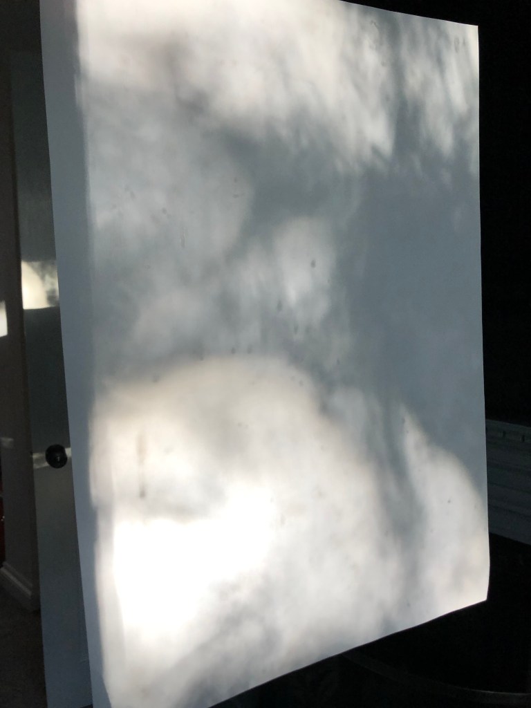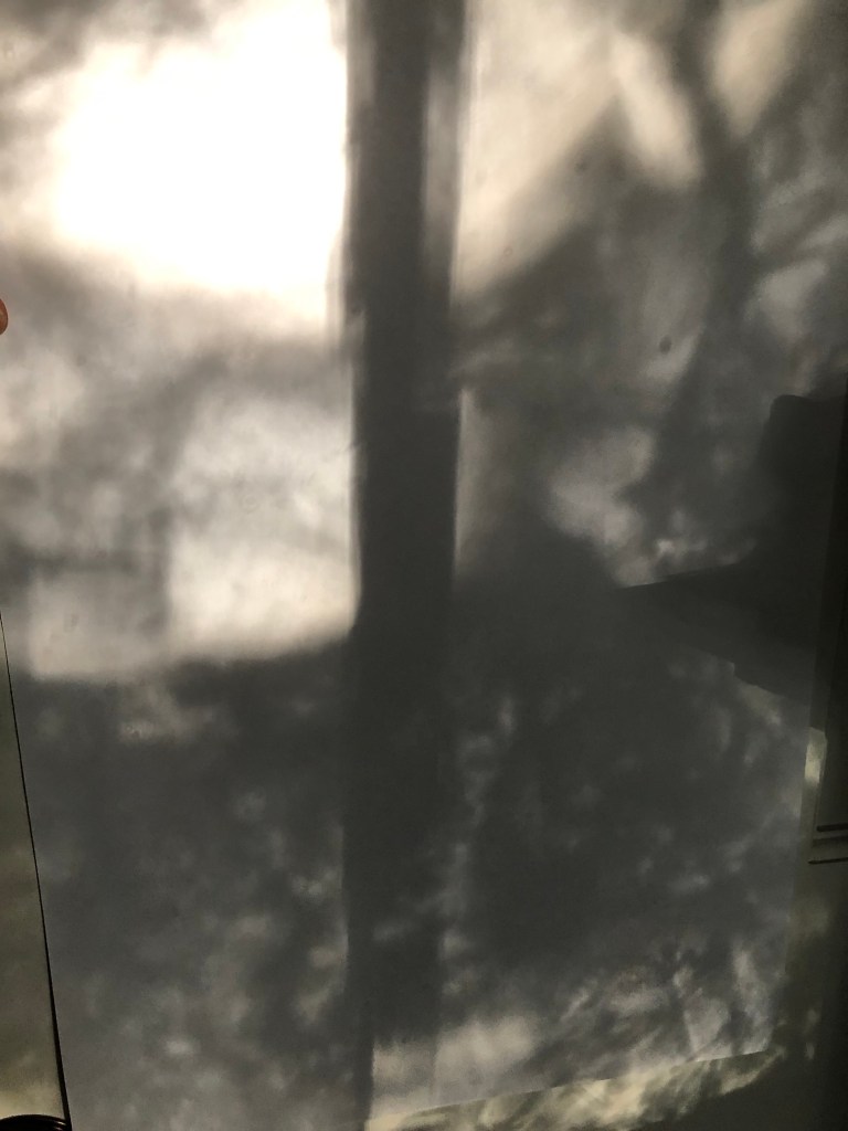 I also experimented with taking photographs of the shadows I find so fascinating in my front room at home. I used a plain piece of paper to catch the shadows and photograph them with my iPhone. I printed these out too and took them to the studio to help me piece together the icebreaker project.