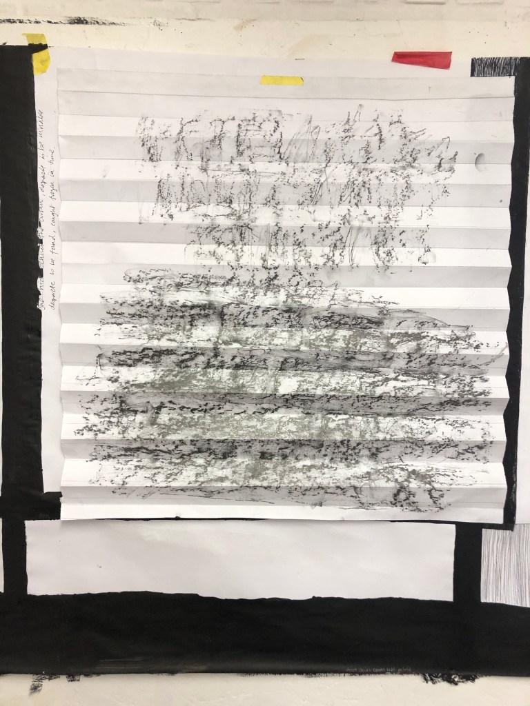 I had turned away from the piece and focused my attention on the photographs I had printed onto paper. I decided to fold, and concertina them up like the paper sculptures I had made in my final year of undergraduate degree. I systematically folded all the pieces I felt would work, leaving out some images. The results are below. The reception of these pieces by the rest of the cohort was of great interest.