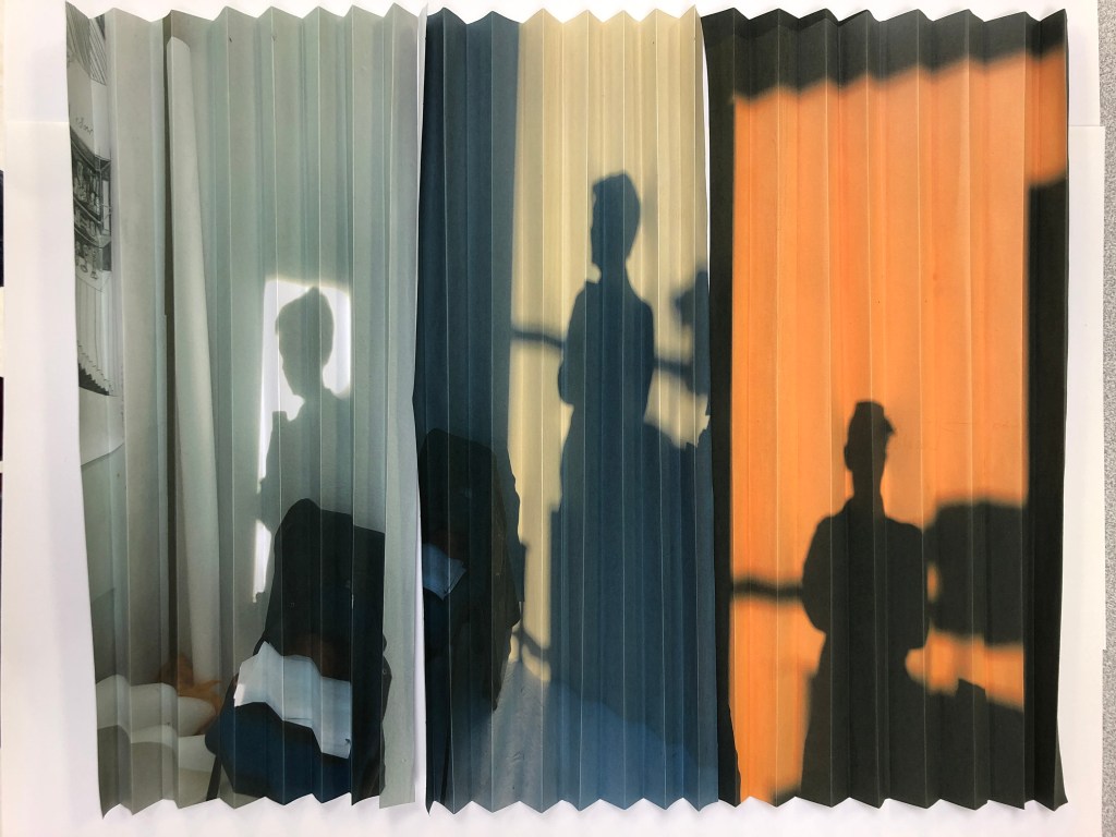 The process of folding these images and distorting the shadows further from the natural pull of the shadow gives the images a greater depth. I had been exploring the fold and how to make the work three dimensional which you will see in other posts.