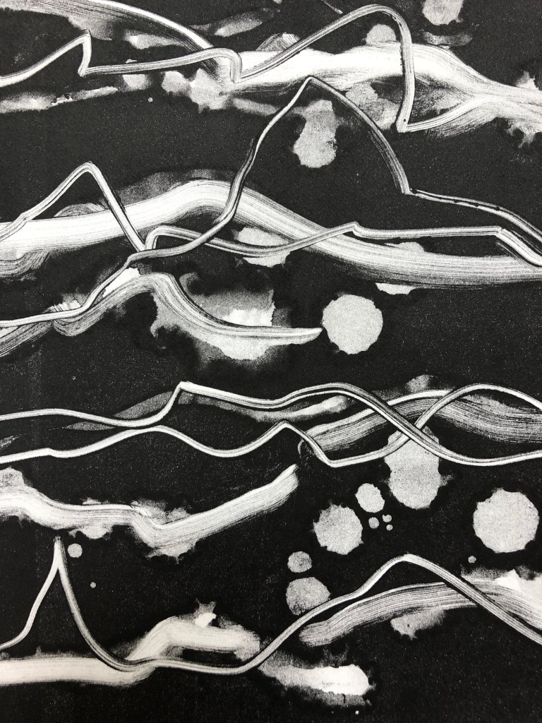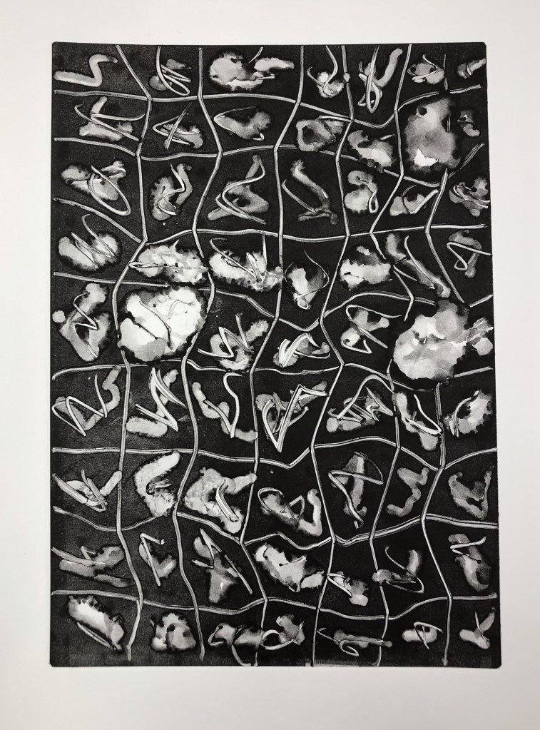 Below you can see the prints I experimented with a few weeks later. I have been printmaking extensively throughout my art career, but this was a new way of working for me and looking to experiment with this monotype technique enabled a big shift in thinking.