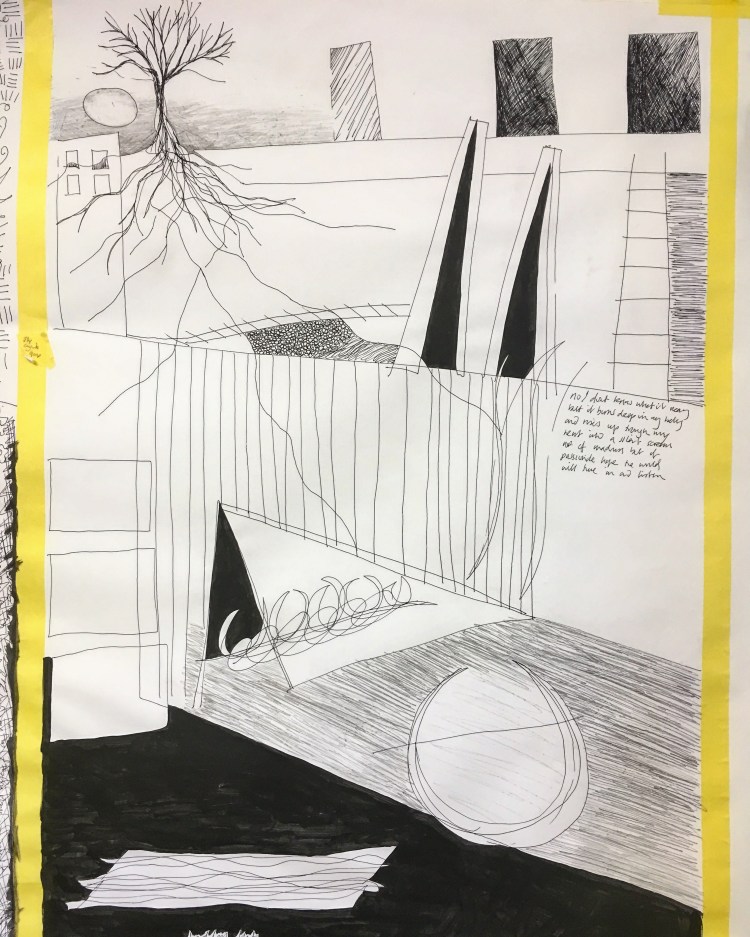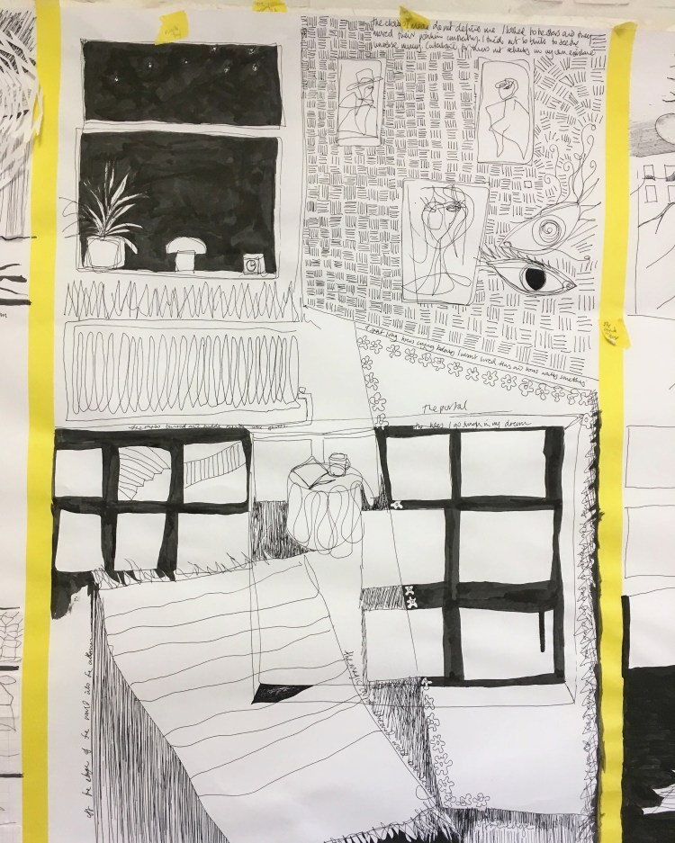 My work is about bringing the internal subjective world, journeying, dreaming, translating the numinous into the external world onto objective drawing and making.