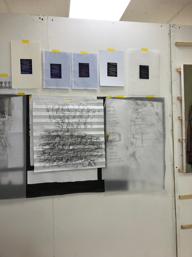 My undergraduate installations were discussed and we agreed this new work is more about installing a set of current work and objects and showing transitions between those made and found objects, drawings and photographic work.
