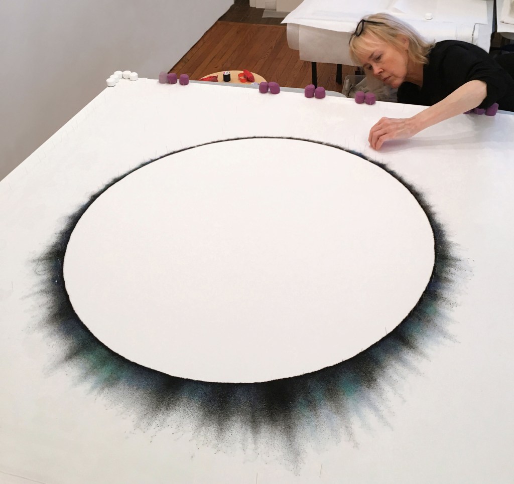Fig 1 Vanish ( Wilson, 2016) damask cloth, hair and thread, 58” x 58” x 2 ¼” (framed)