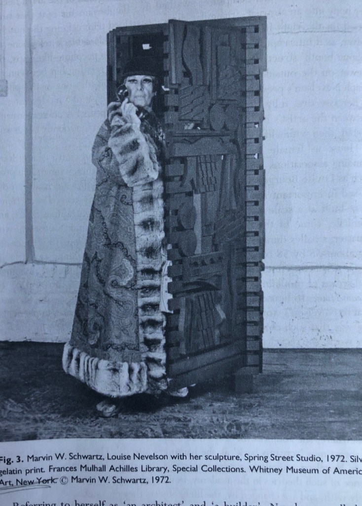 So I concluded from this further research that Bryan-Wilson isn’t the only art historian who is claiming that Nevelson’s identity as a queer woman was an important part of her feminist work and in breaking down barriers for women artists at this time by refusing to be politicised in her artwork or identity meant that actually it had more power and longevity.