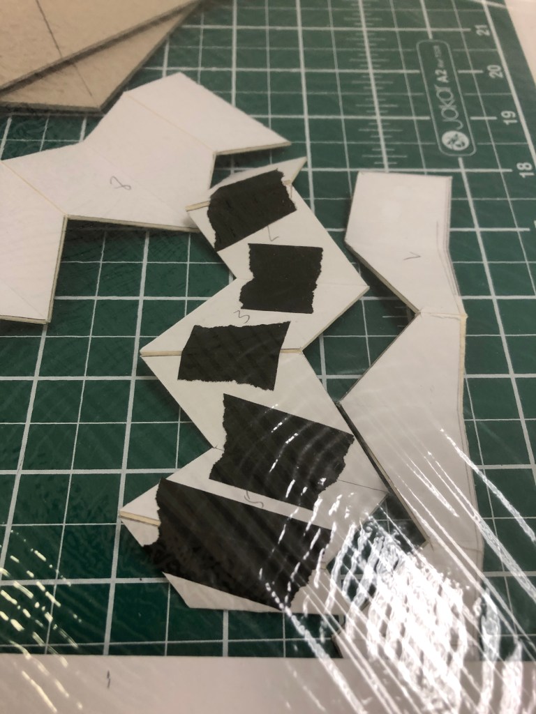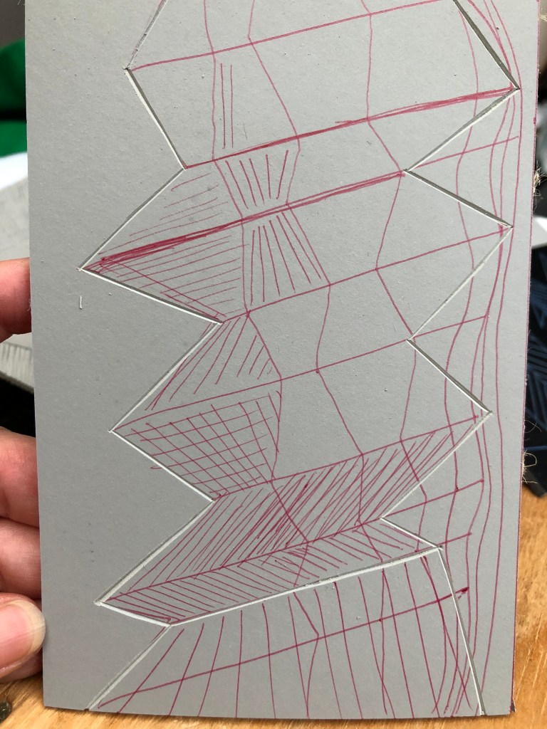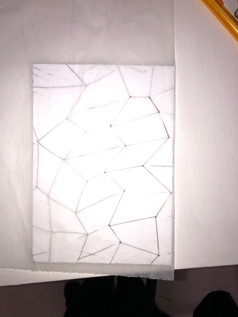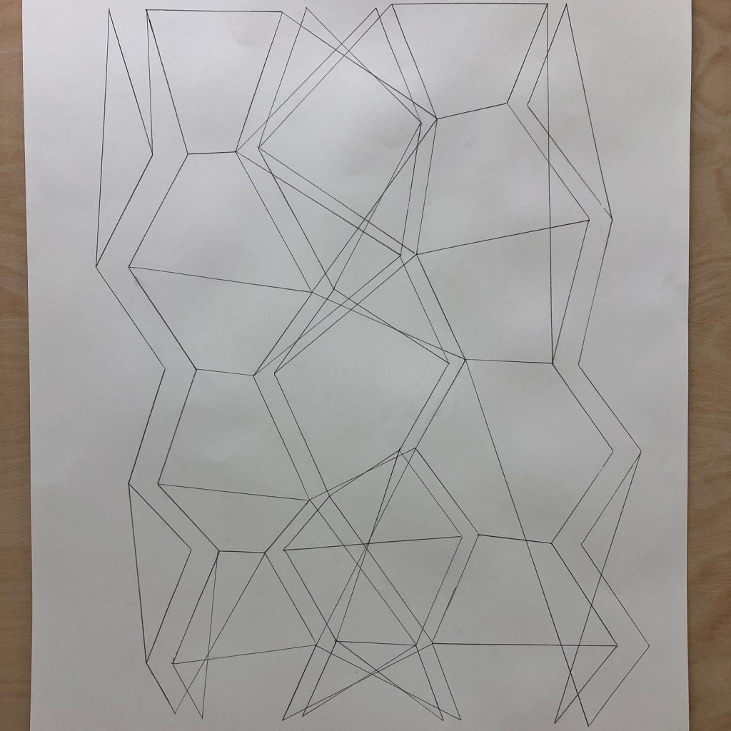Drawing the internal rhombi ready to make cardboard interventions