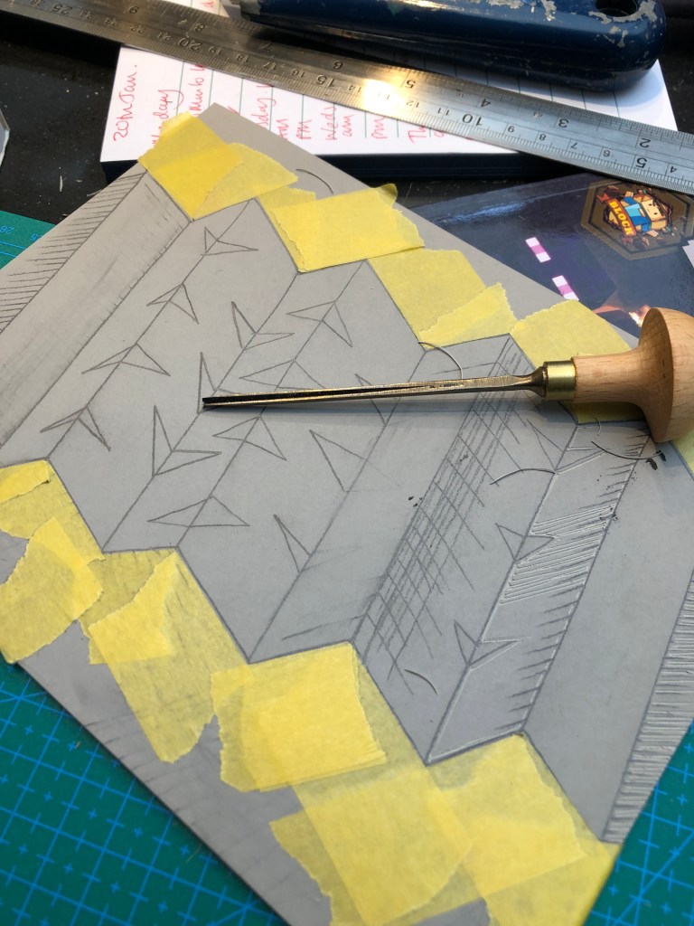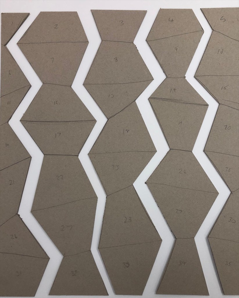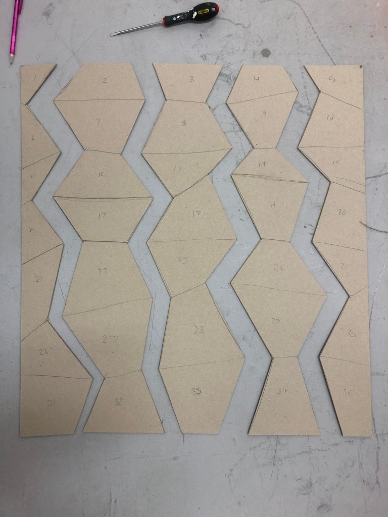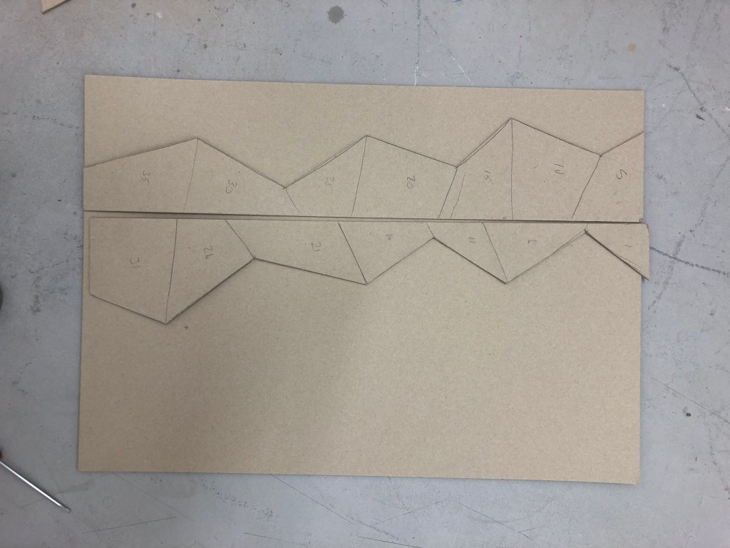 Drawing the internal rhombi ready to make cardboard interventions