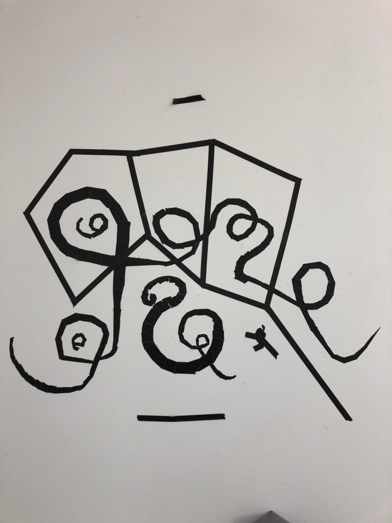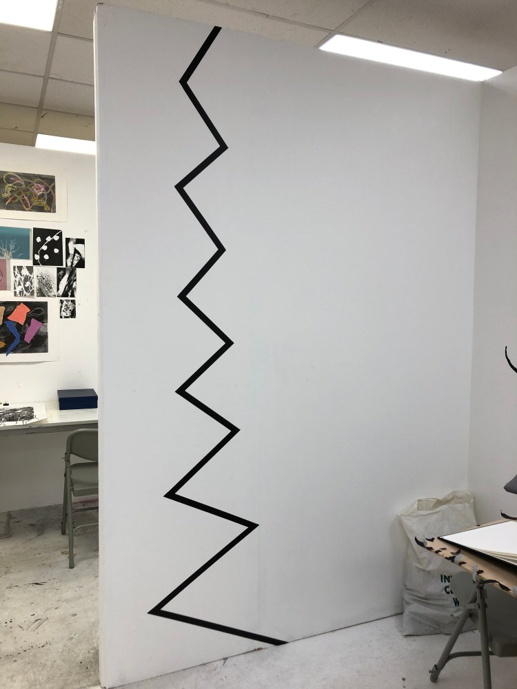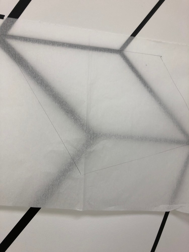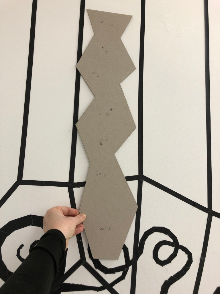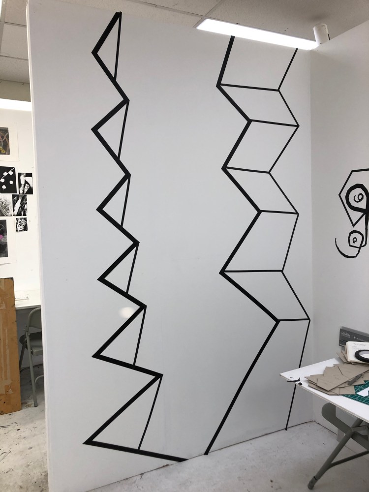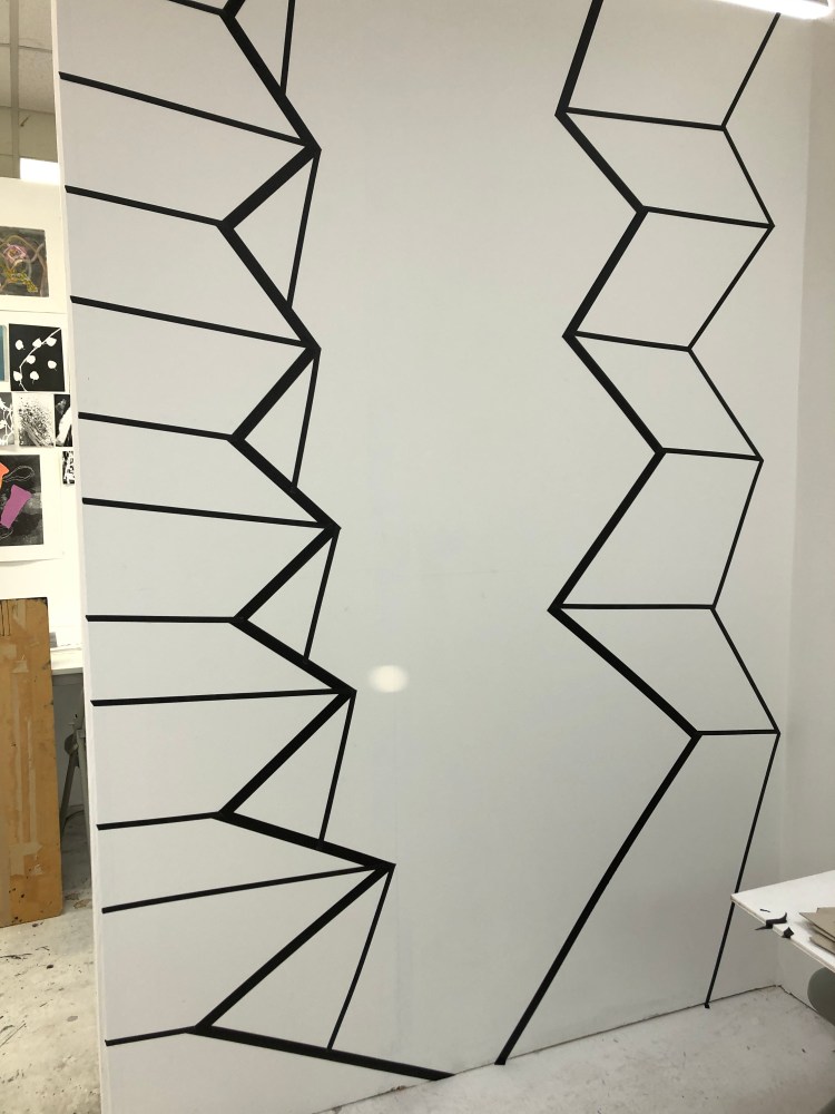 Beginning to draw directly onto the studio wall with black tape 23rd January 2020