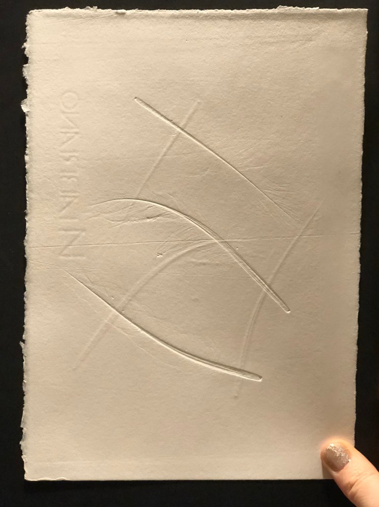etching plates showing the impressions left by the ritual finds feathers
