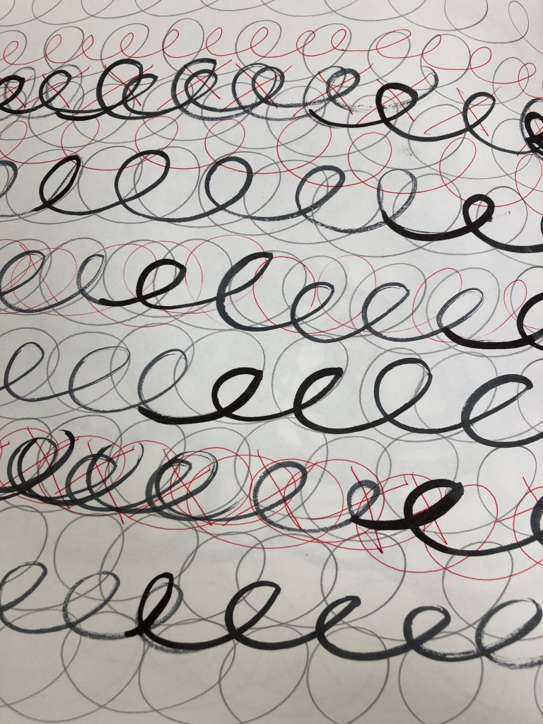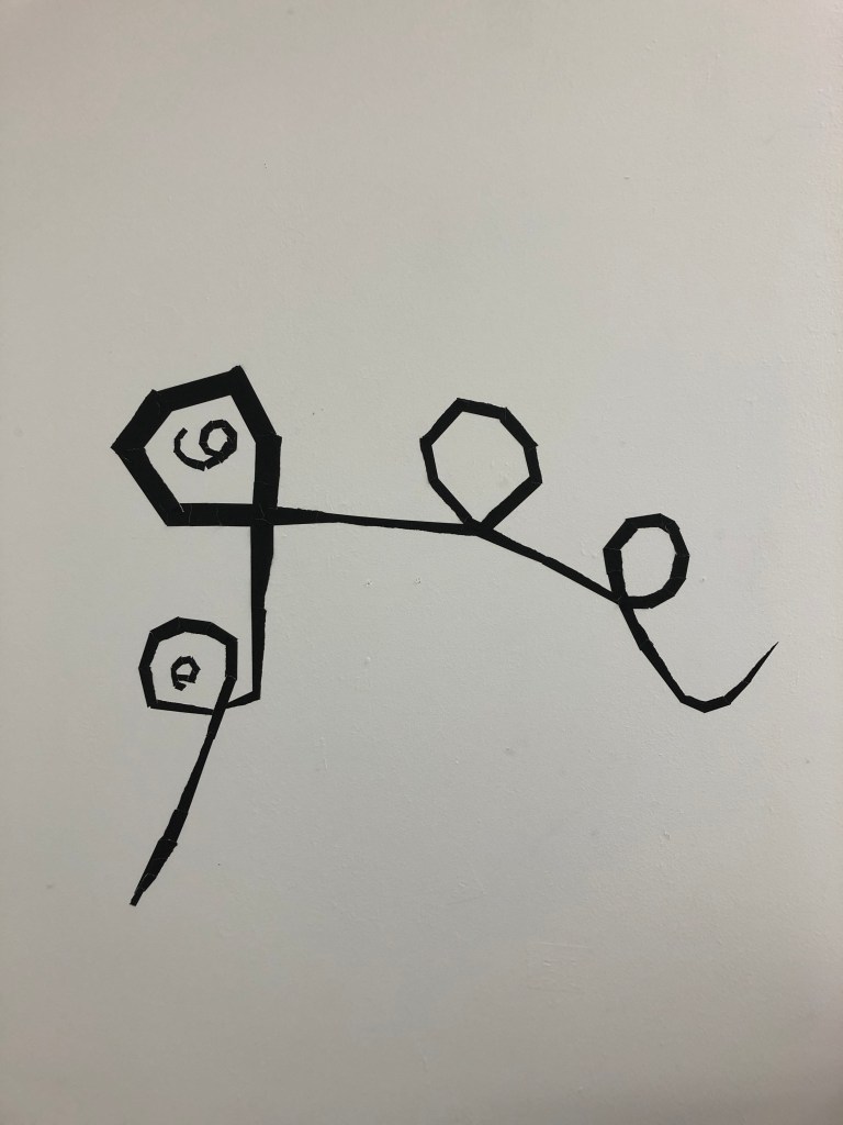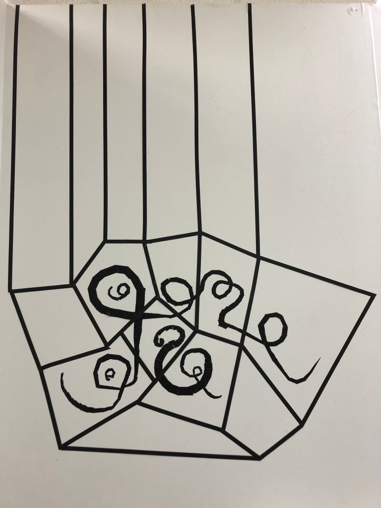 I started to add verticals to take the drawing into it’s own space on the wall 6th February 2020