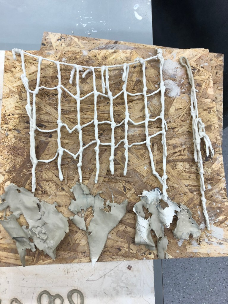 I also made some nets, these were incredibly fragile and have broken but the pieces will be used. Shown below are examples of studio research in the ceramics and three dimensional workshop areas.