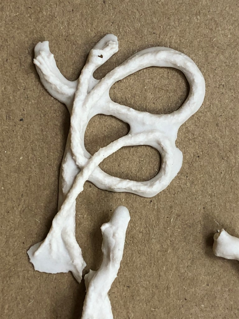 I dripped string into the porcelain slip and made shapes