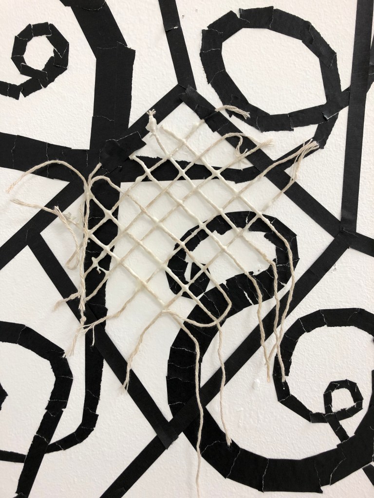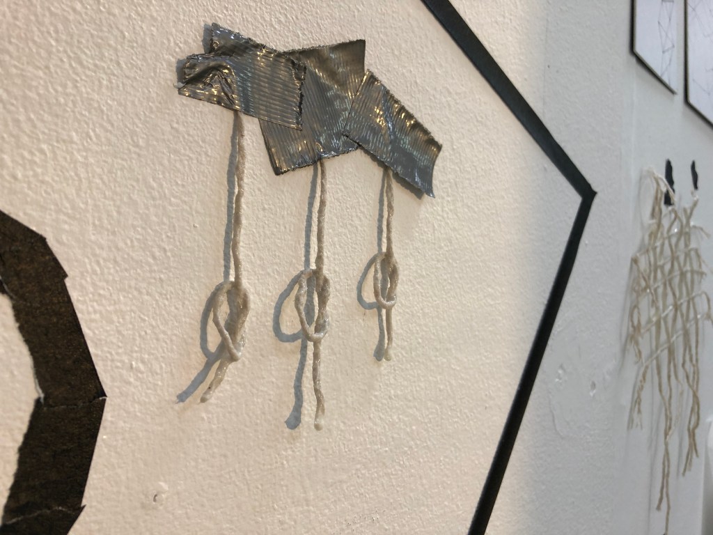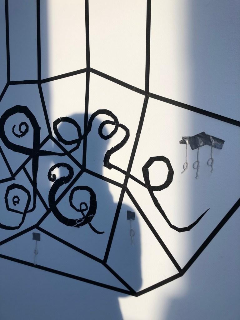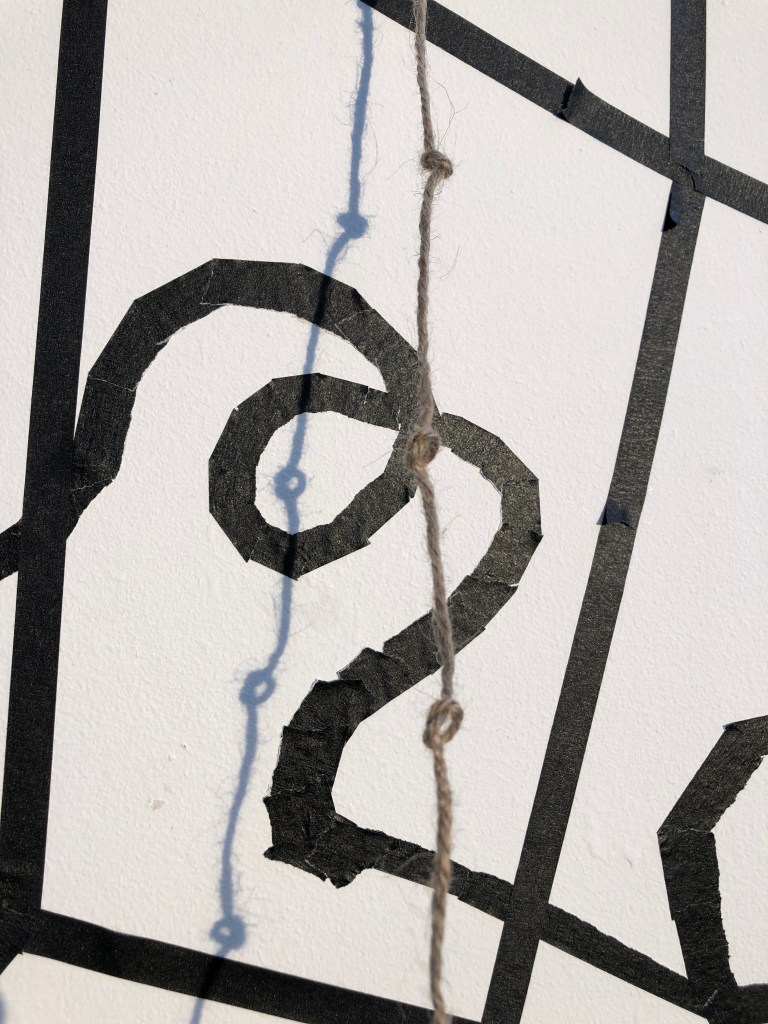 making knots with string and adding the shadows to the cell installation, recording the performance of this intervention 26th February 2020