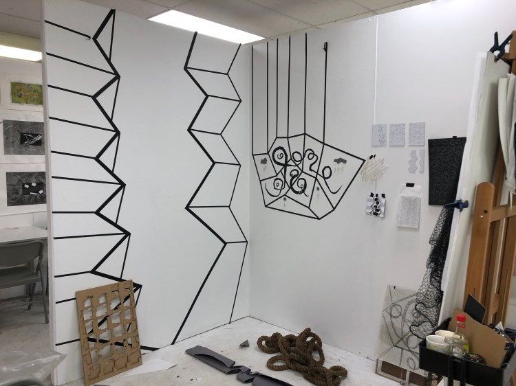 using ready made net to create shapes in the studio February 2020
