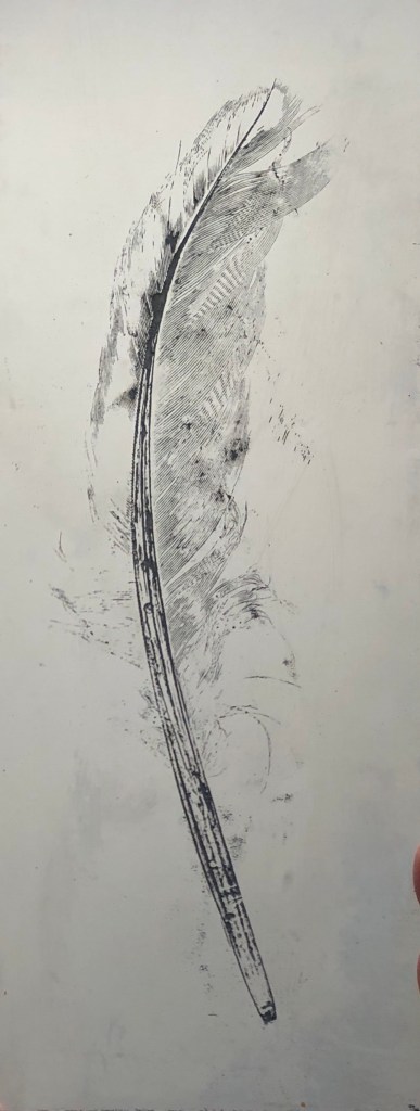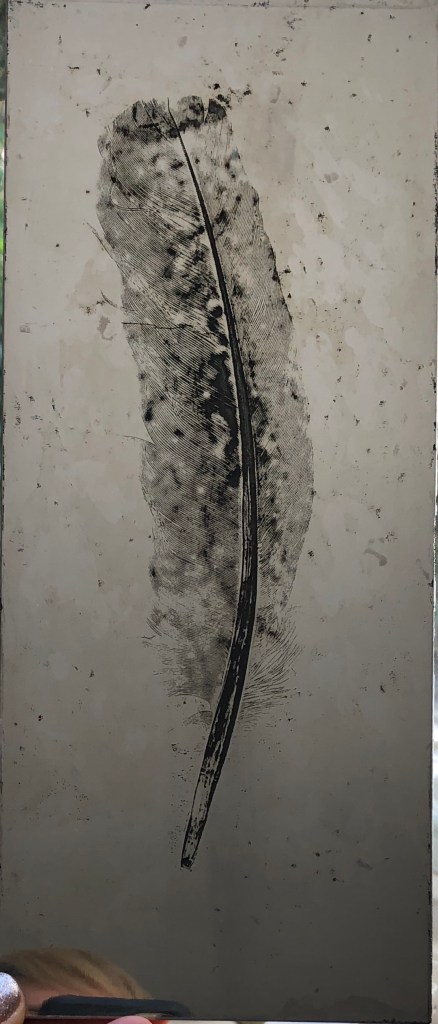I then made some soft ground etching plates of some of my ritual feather finds and the plates are now ready to print as soon as soon as the print room re-opens