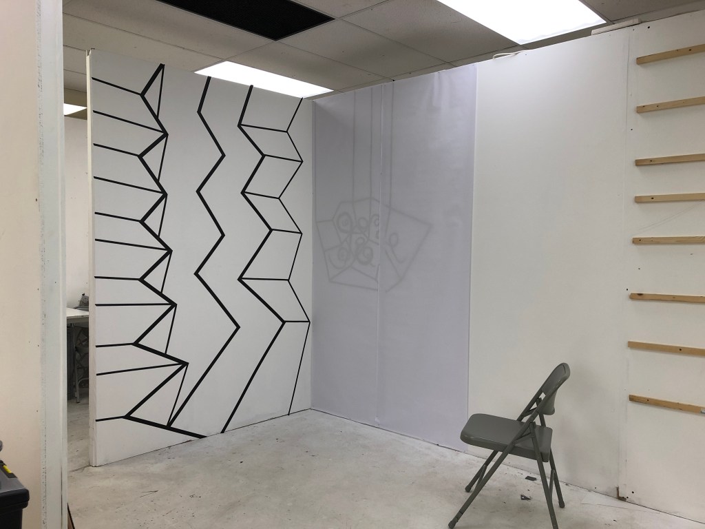 I have waited six months to return to the installation I started during Practice One and Semester B. I turned the work into maquettes to develop the project during lockdown. I had the opportunity to return to this work on a larger scale on September 23rd and wasted no time in realising some of the ideas that had been burning my mind and hands off to actually physically make. I spoke to both visiting lecturers, Michael Petry and Joanna Hyslop about how I would develop this work which was originally a series of proposals. I decided to start by using the space as a drawing board and use the space as both installation and drawing space.