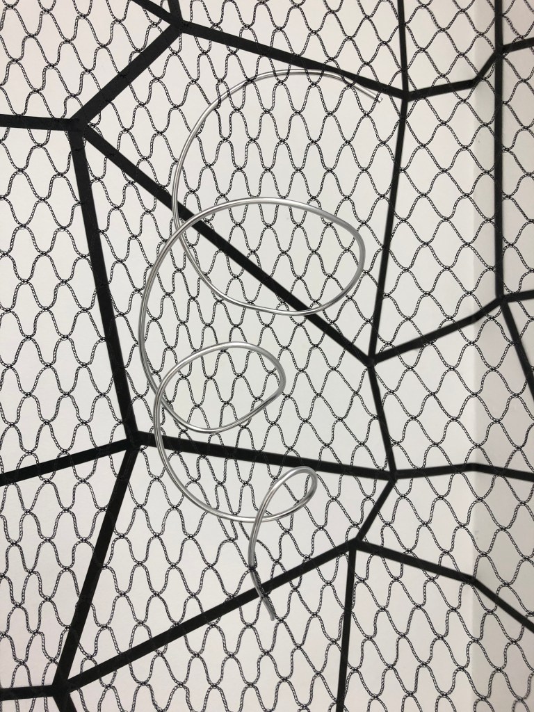 The third iteration of the piece came after sitting with the installation for some time. I then started to work into it with aluminium drawings in three dimensions and adding them into the net.