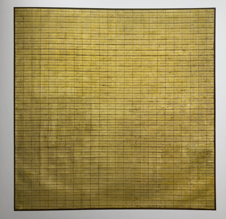 Two things occurred when Martin when made the painting she called Friendship. Firstly, she took a material object, the gold leaf and made it not into a two-dimensional painting, but somehow rendered it into a deeper space than the canvas afforded on its own. Secondly, she created a concrete yet glowing casting of a friendship with her close associate Lenore Tawney. Glenn Adamson writes that Martin created a ‘luminous gold painting called Friendship that could be interpreted as a tribute to Tawney, and also wrote her an extraordinary letter of thanks for an unspecified act of generosity’. (Adamson, 2019, p.73). Martin concluded this letter; ‘Any expression of gratitude is like the soundless sound. It is going to be like the waves over and over again. –Forever is not [sic] long. I think this is the “real thing”. Agnes.’ (Adamson, 2019, p. 73).