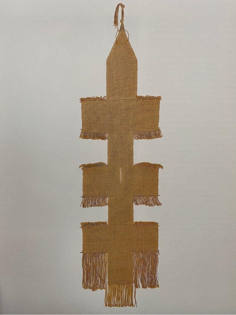 When I found the piece by Tawney, The Path (1962) I wrote to the Kathleen Mangan, the Executive Director of the Lenore G. Tawney Foundation because I just could not find any answers to the questions I had about this woven sculpture. Where had this piece been? It escaped any exposure online; I couldn’t find it in any third-party accounts of Tawney’s work. I could find no traces of it except for within the monograph of Lenore Tawney Mirror of the Universe only recently published by Mangan. Mangan replied, thanking me for asking such an interesting question. She confirmed that this particular gold leaf was atypical, Tawney had not used gold leaf in the other version of the Path series. In regard to how important this piece was to Tawney; she confirmed my suspicions that the piece had remained in Tawney’s possession. I quote here directly from Mangan’s reply. ‘The concept of the “path” was an important one for Tawney, representing her deep spiritual search and the journey we all take. In an undated journal entry, she wrote: “The Tao, a Path; the Way, The Absolute, the Law, Nature, Supreme Reason. Laotse says: ‘there is a thing which is all-containing, which was born before the existence of Heaven & Earth. How silent! How solitary! It stands alone & changes not. It revolves without danger to itself & is the mother of the universe. I do not know its name & so call it “The Path.'” (Punctuation and abbreviations are per LT.) (Mangan, 2021, p.1). The piece that Tawney had been so wild about, which had the inclusion of the precious gold leaf, never left her ownership and she only parted with it on the occasion of her death.